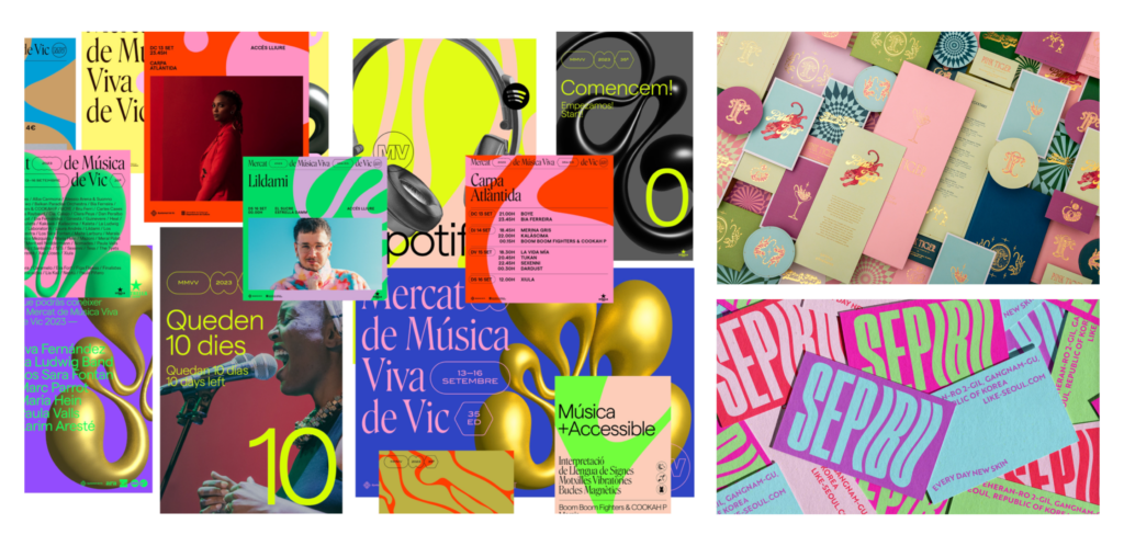 Last year, we saw many dual-tone pastel color combinations. This year, designers are even bolder, experimenting with unexpected color combinations. These combinations create a visual “conflict” that captivates and engages the audience. The more unusual the color combinations seem at first glance, the more they attract attention and leave a lasting impression.