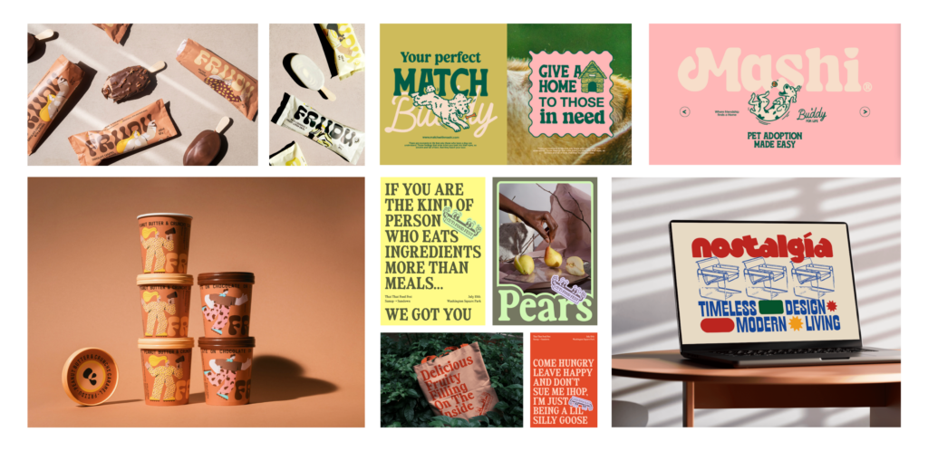 Last year, retro serif fonts gained significant popularity in branding, and this trend will continue into 2025. Serif fonts combined with retro color palettes create designs that evoke nostalgia and warmth.